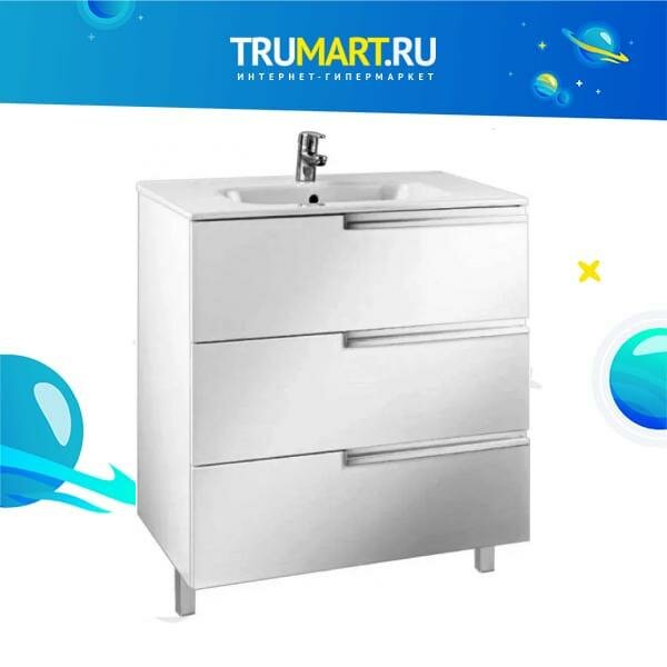 Купить Тумба Roca Victoria Nord Ice Edition для раковины VICTORIA 800мм, с тремя ящиками, белый глянец (ZRU9302835)
