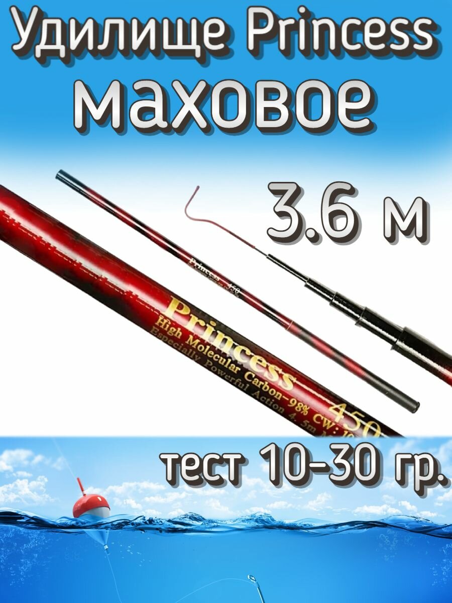 Ниже Вы можете прочитать отзывы на Удилище телескопическое Princess маховое без колец, тест 10-30 грамм, 360 см, ознакомится с подробными характеристиками, посмотреть интересные обзоры и фотографии на Удилище телескопическое Princess маховое без колец, тест 10-30 грамм, 360 см.