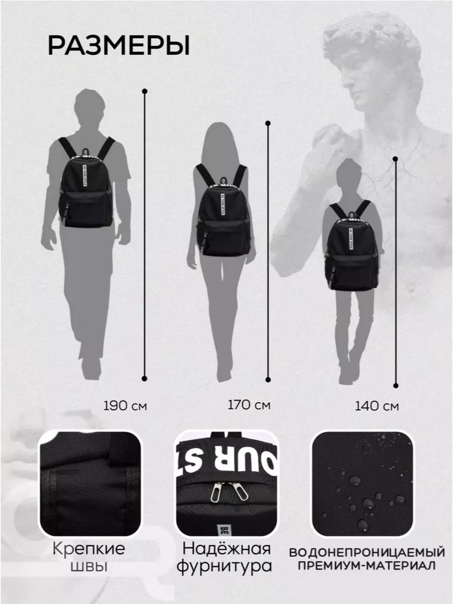 СохранитьРюкзак черный мужской, женский, школьный, спортивный, повседневный, городской, для путешествий и тренировок интересное: