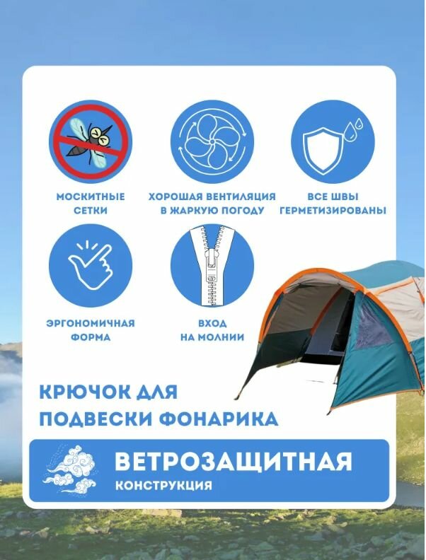 Палатка ART1908, 3-местная, кемпинговая, двухслойная, с тамбуром, зеленая