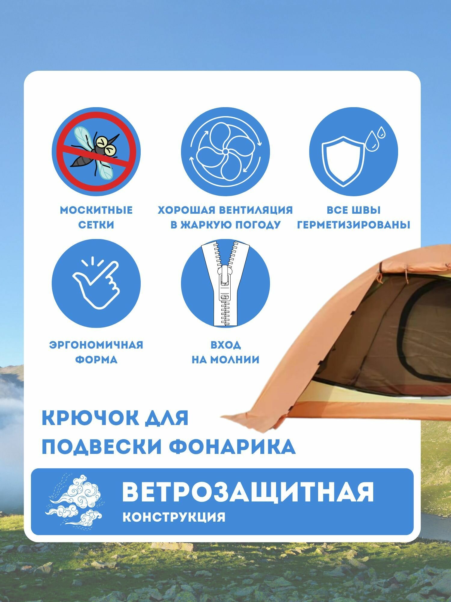 Палатка туристическая 2 местная с тамбуром двухслойная кемпинговая для отдыха на природе,для рыбалки mircamping 1504-2