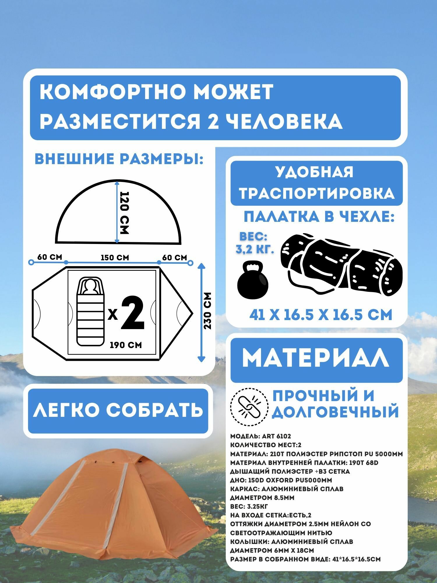 СохранитьДвухместная ультралёгкая палатка ART-6102 интересное: