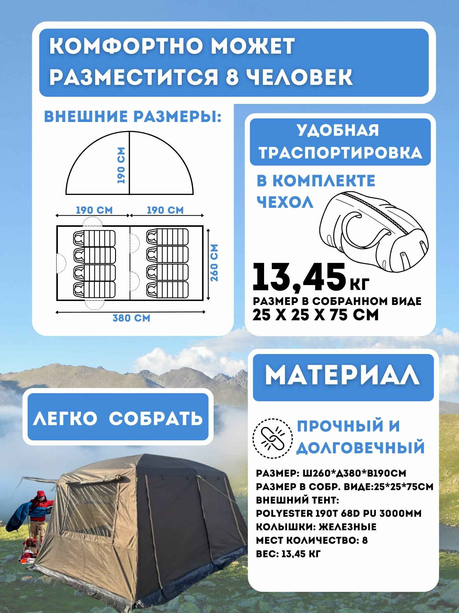 | Материал тента | политаффета 190Т 68Д PU |