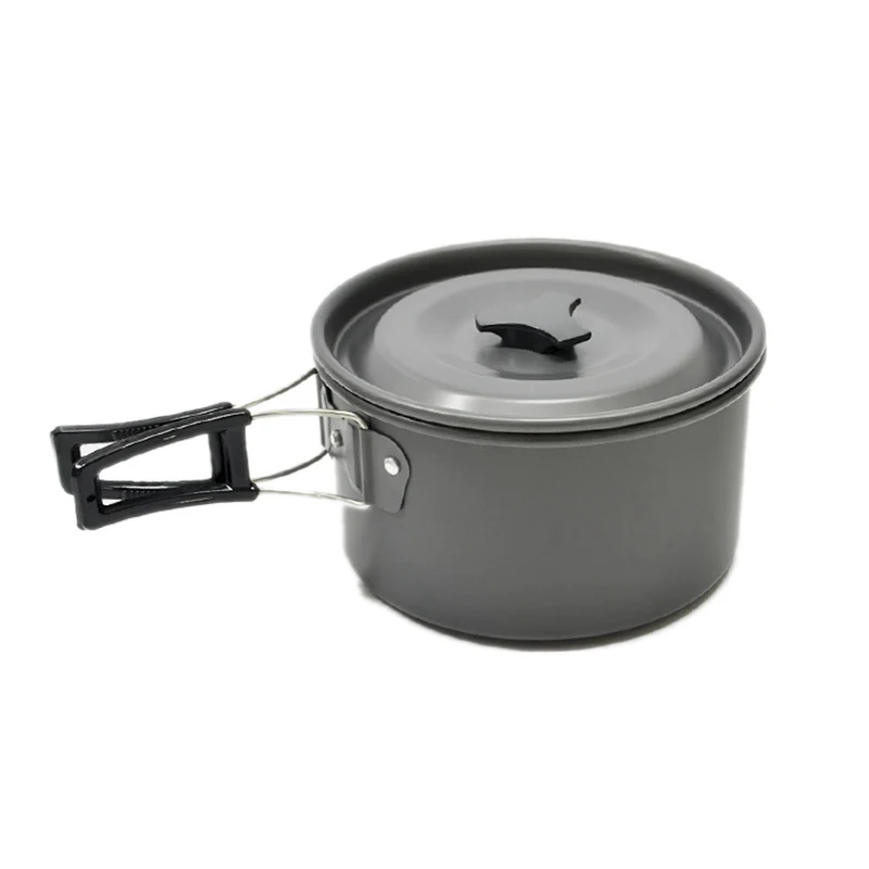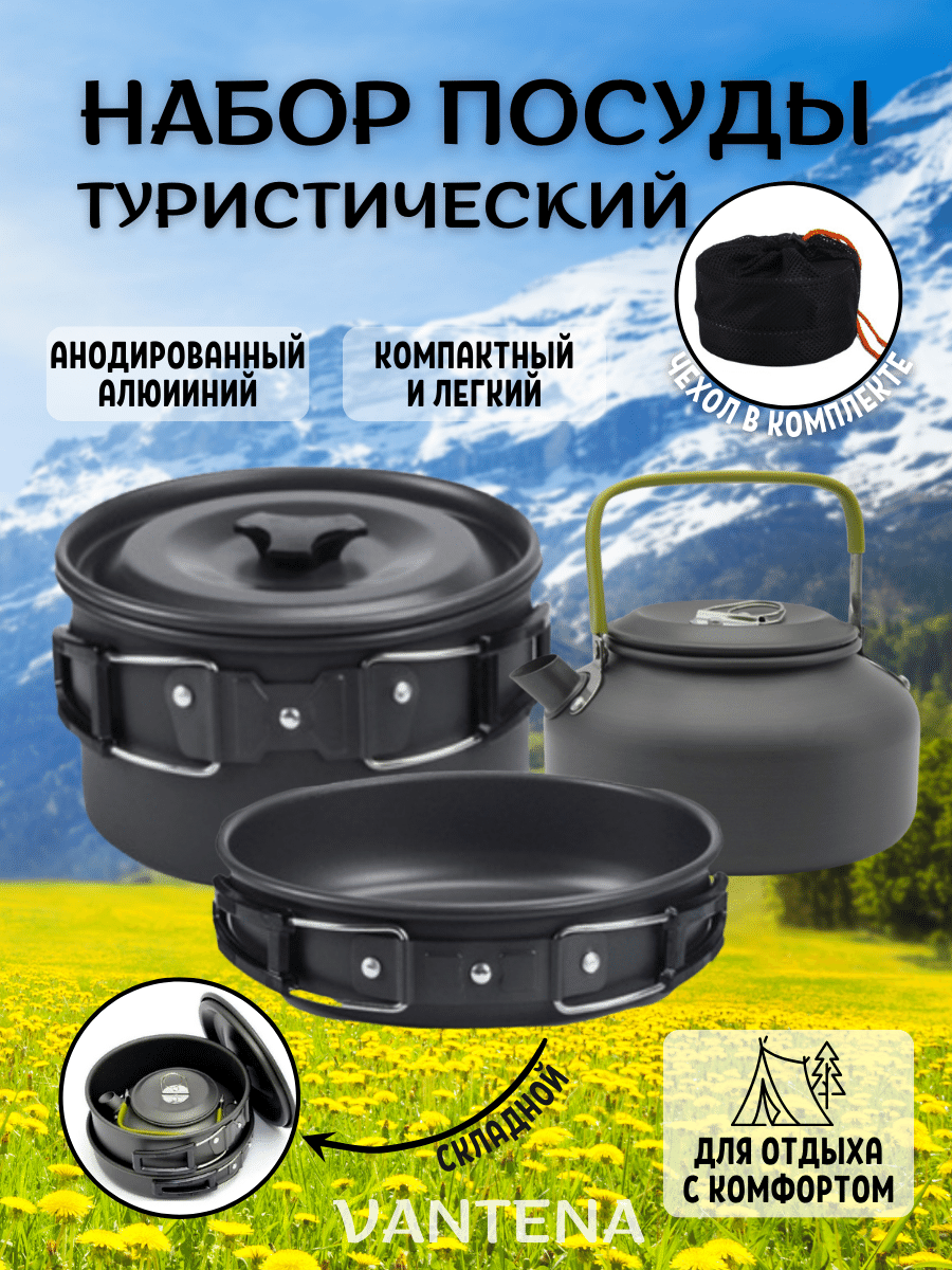 Купить Походный набор посуды с чайником, складной, алюминий, цвет ручек - черный