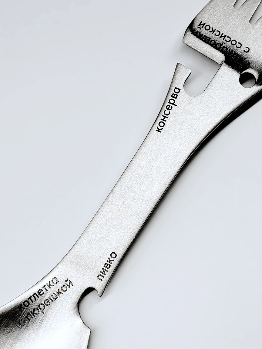 Походная ложка-вилка Фотонные коты "А это для чего?", мультитул 5-в-1 для туризма с забавной надписью