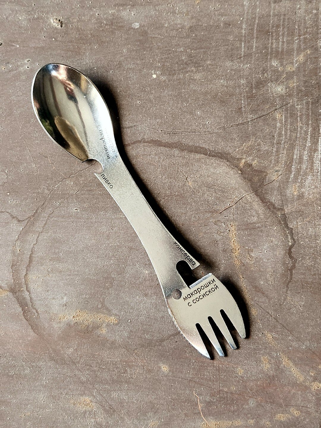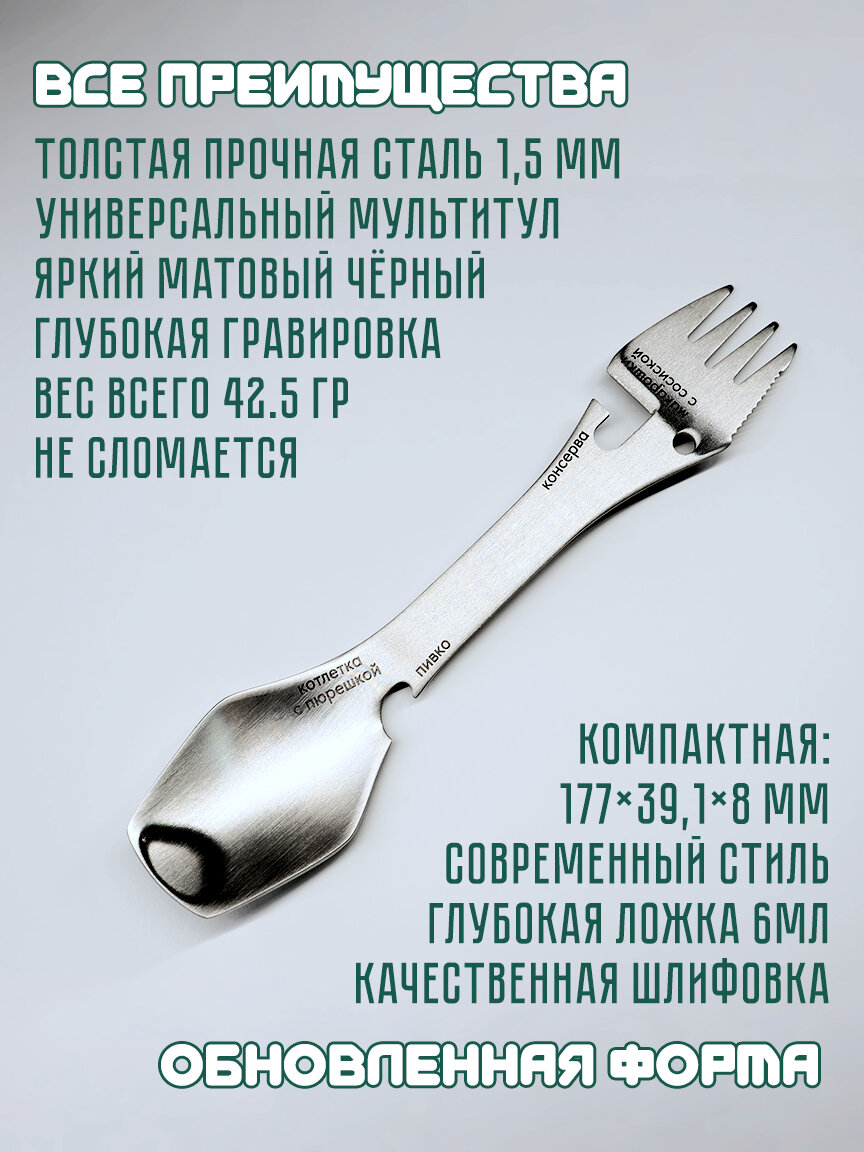 Походная ложка-вилка Фотонные коты "Хороша ложка к обеду", мультитул 5-в-1 для туризма с забавной надписью