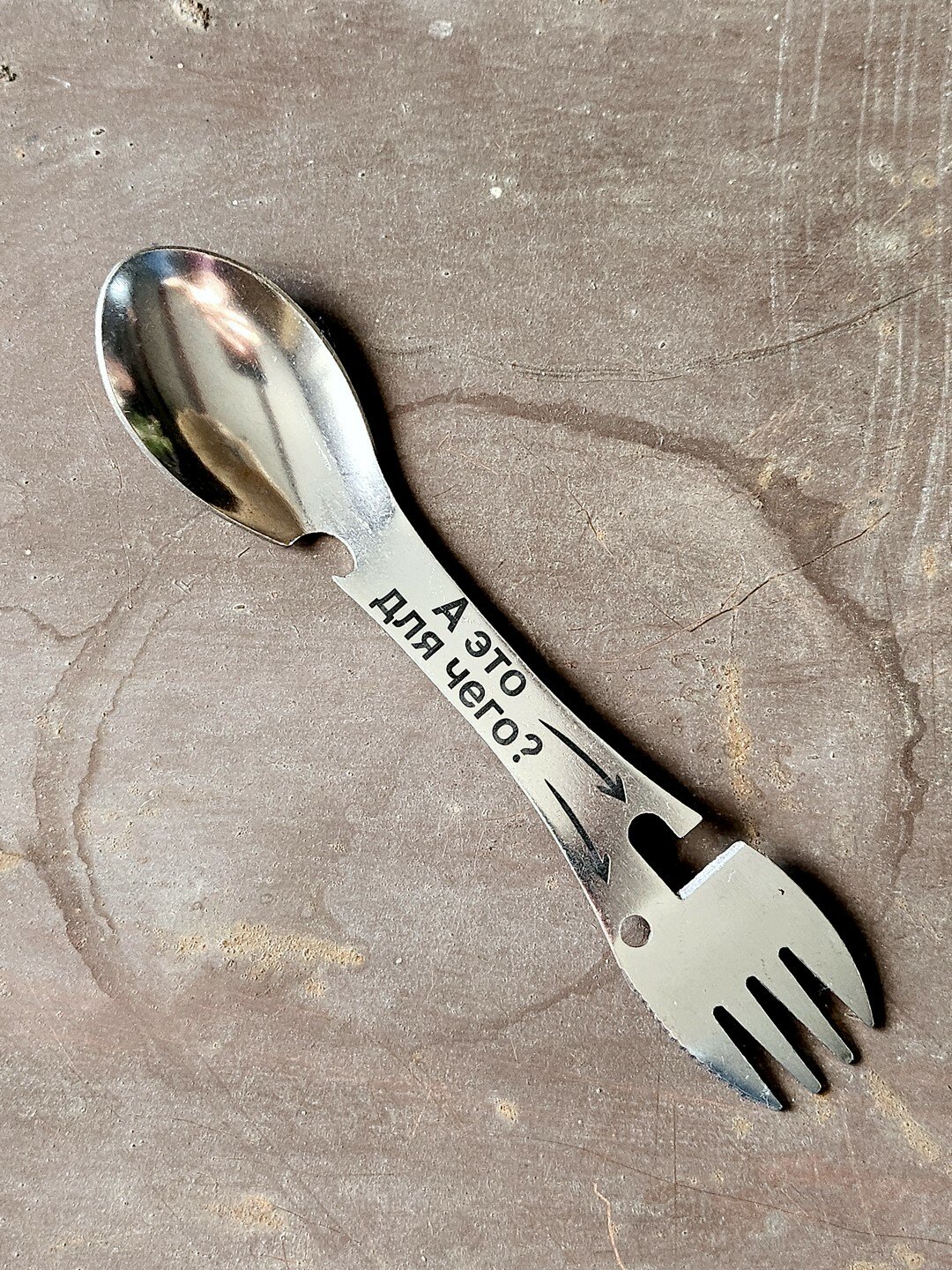 Купить Походная ложка-вилка Фотонные коты "А это для чего?", мультитул 5-в-1 для туризма с забавной надписью
