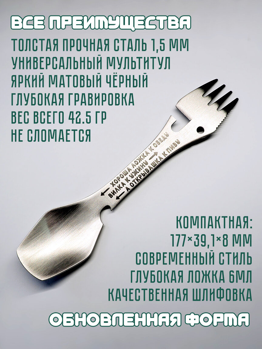 Ниже Вы можете прочитать отзывы на Походная ложка-вилка Фотонные коты "Хороша ложка к обеду", мультитул 5-в-1 для туризма с забавной надписью, ознакомится с подробными характеристиками, посмотреть интересные обзоры и фотографии на Походная ложка-вилка Фотонные коты "Хороша ложка к обеду", мультитул 5-в-1 для туризма с забавной надписью.