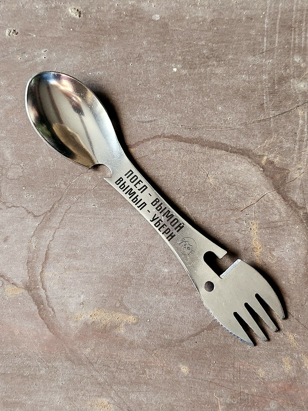 Купить Походная ложка-вилка Фотонные коты "Поел - вымой, вымыл - убери", мультитул 5-в-1 для туризма с забавной надписью