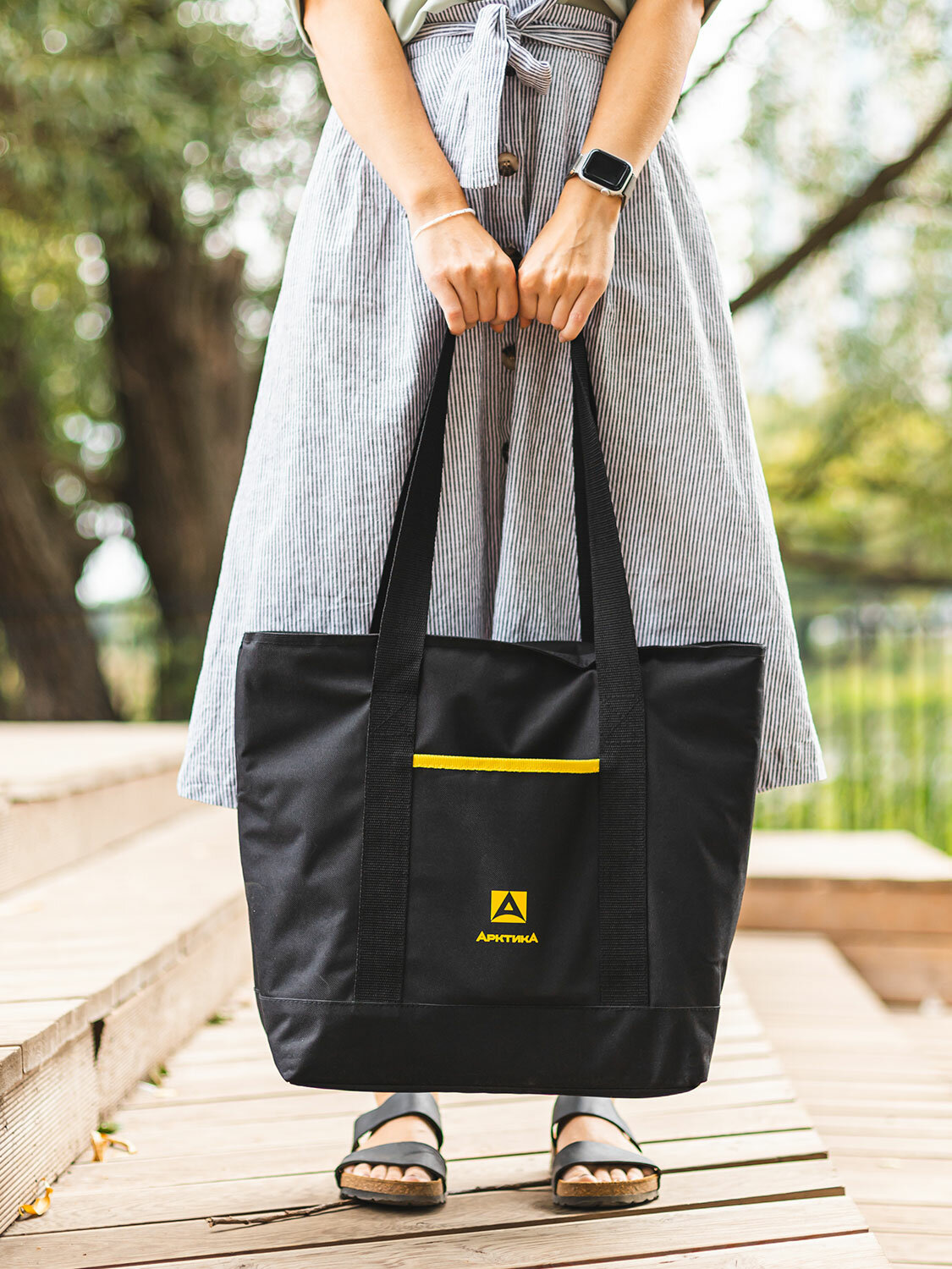 Термосумка холодильник Арктика 3400-17 черная 17 литров шоппер с ручками и внешним карманом