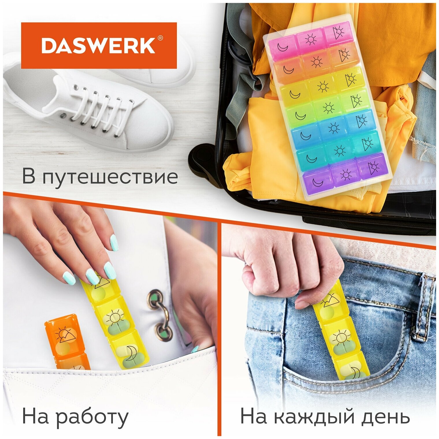 | Дополнительная информация | Таблетница/контейнер-органайзер для лекарств и витаминов DASWERK 7 дней/2 приема Maxi - 1 шт |