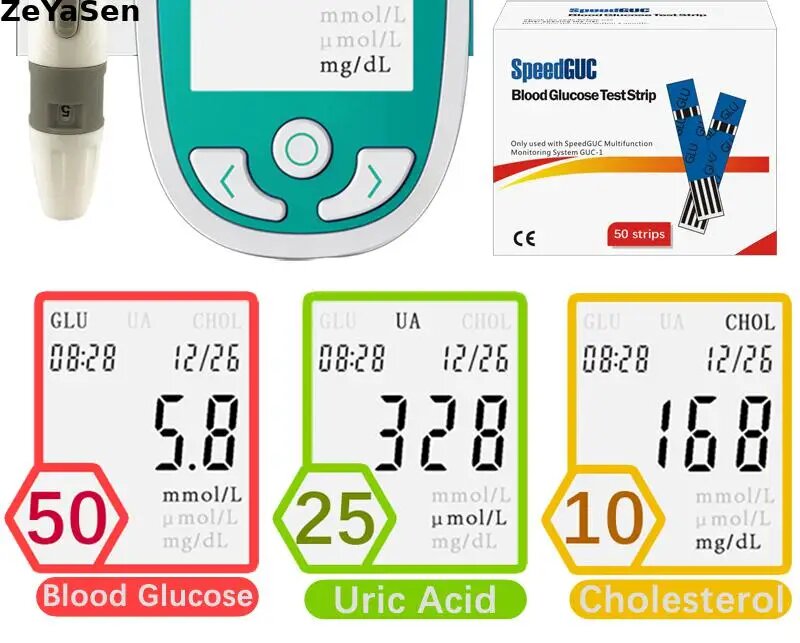 Многофункциональный глюкометр для измерения холестерина, мочевой кислоты и глюкозы, Strips UA 25