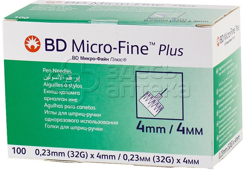 Игла для шприц-ручек BD Micro-Fine Plus, 4 мм x 0.23 мм, размер: 32G, 100 шт. интересное:
