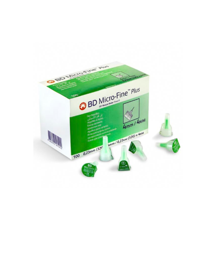 Иглы для инсулиновых шприц-ручек BD Micro-Fine Plus с заточкой Pentapoint 32G (0,23 x 4 мм) 100 штук