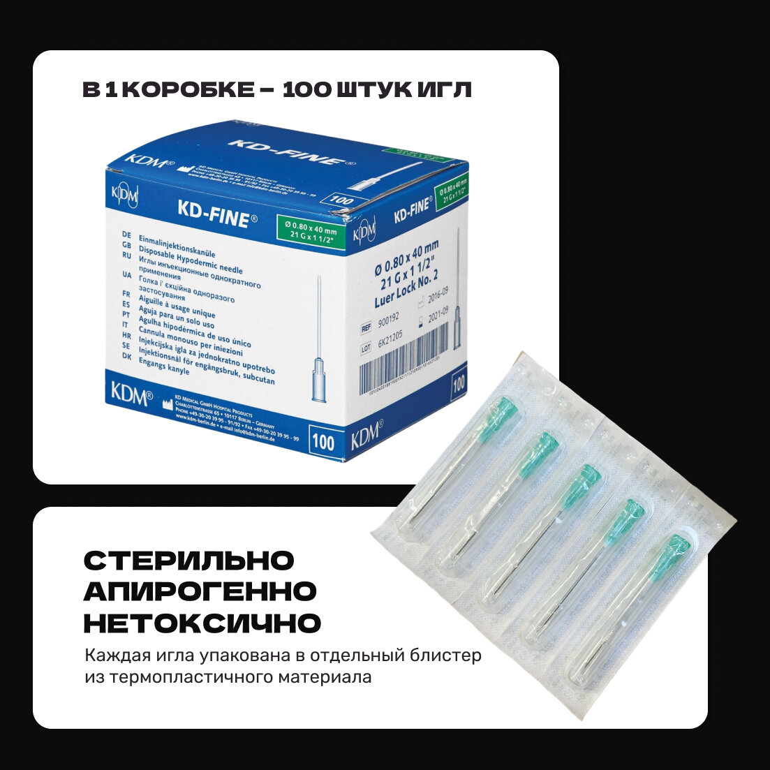Купить Иглы инъекционные стерильные KDM KD-Fine 21G (0.80х40), 100 шт