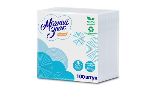 Купить Салфетки бумажные Мягкий Знак 1-сл белые, 100 листов