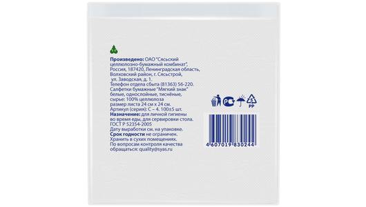Салфетки 1-сл.Мягкий знак белые 100шт./уп.c4
