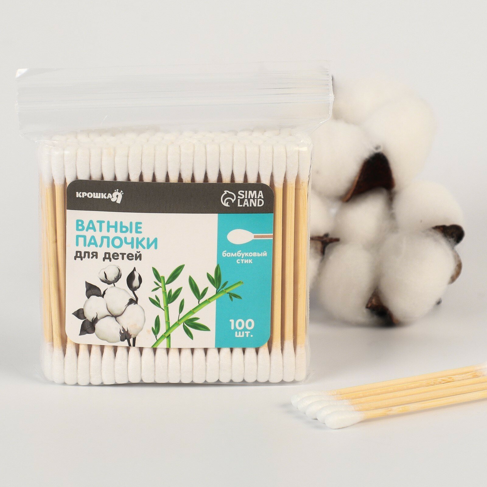 Ватные палочки, коробка 200 шт., деревянные, бамбук, хлопок, для детей и малышей