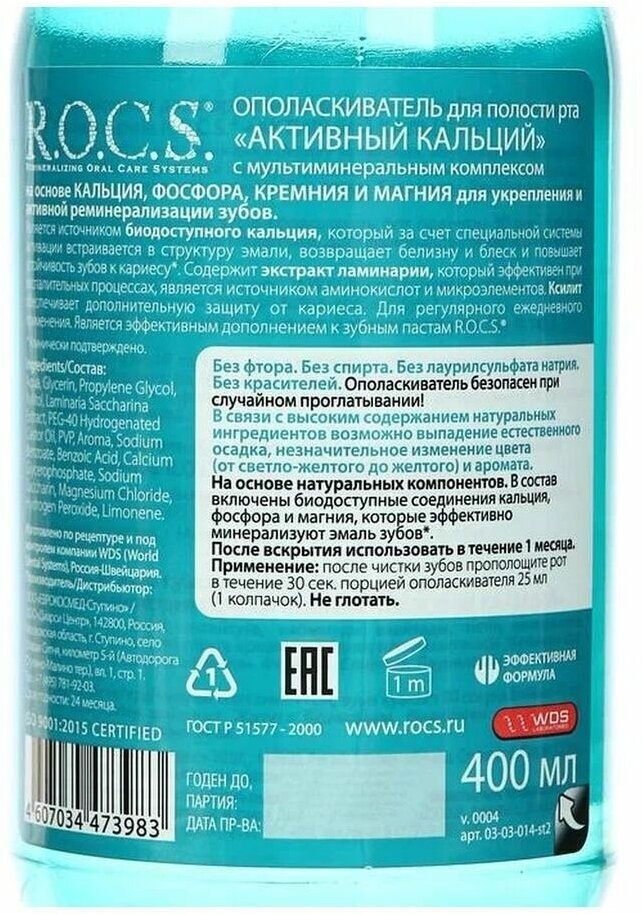 Купить Ополаскиватель R.O.C.S. Активный кальций, 400 мл