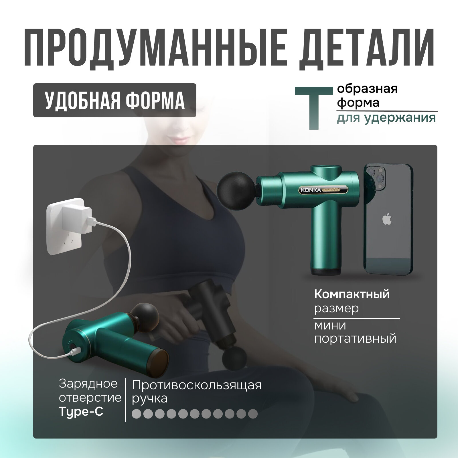 Перкуссионный мини-массажер Konka зеленый интересное: