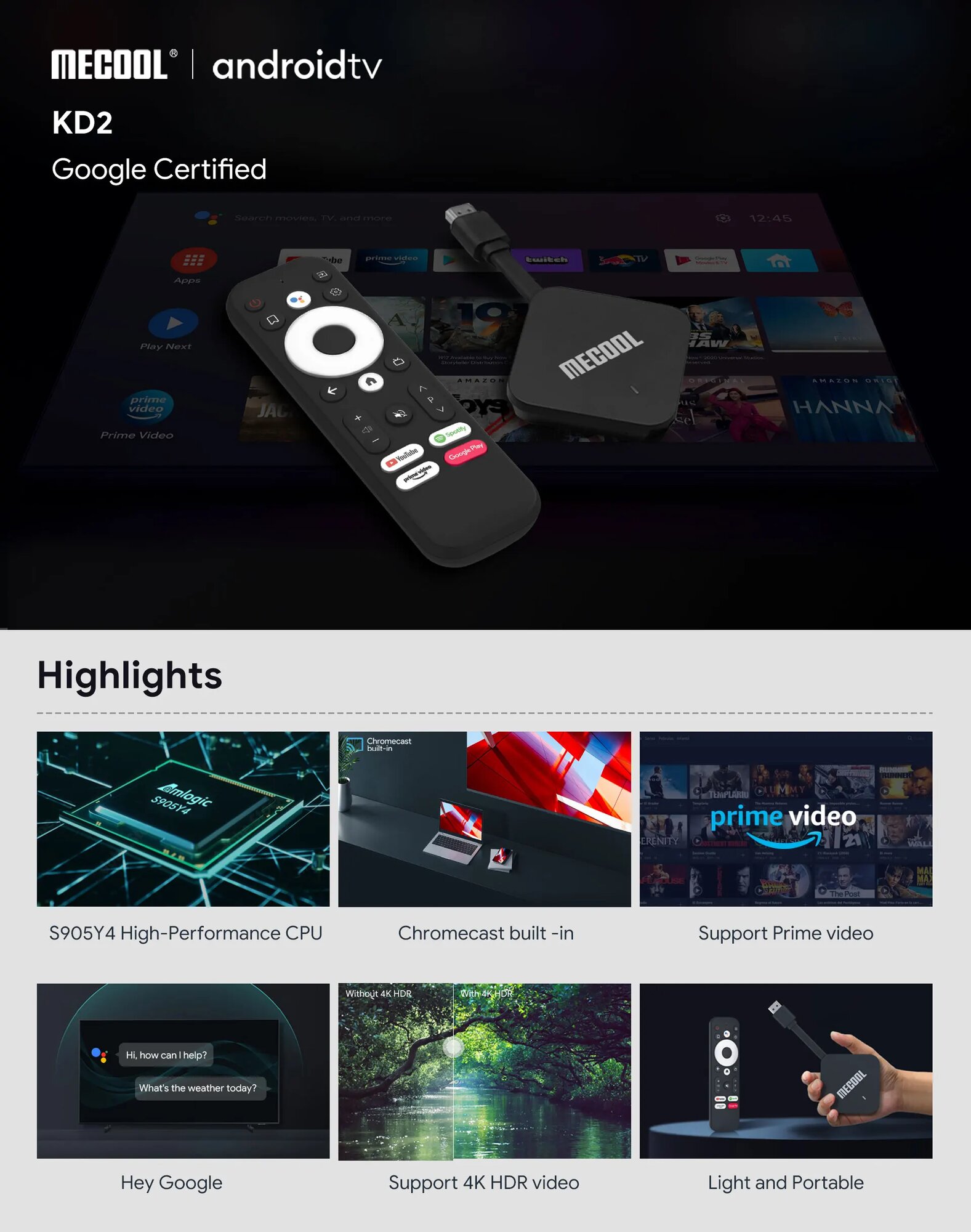 MECOOL KD2 Android 11 TV Stick Amlogic S905Y4 Google Сертифицированный медиаплеер 4 ГБ 32 ГБ DDR4 Android tv 5G WiFi Prime Video TV Stick