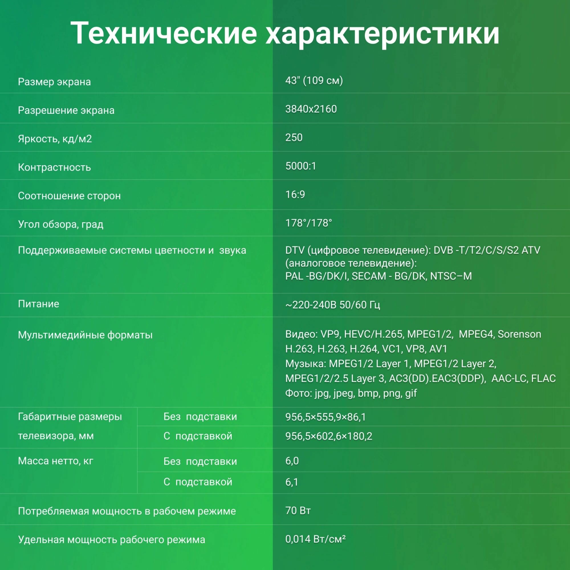 | Формат телевизора | 16:9 |