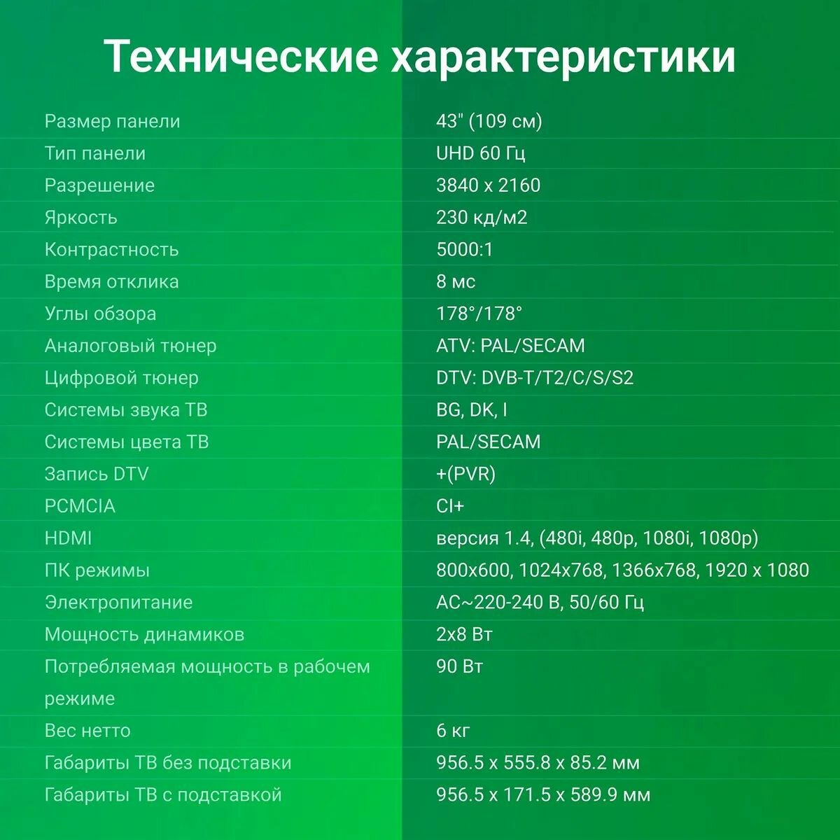 | Формат телевизора | 16:9 |