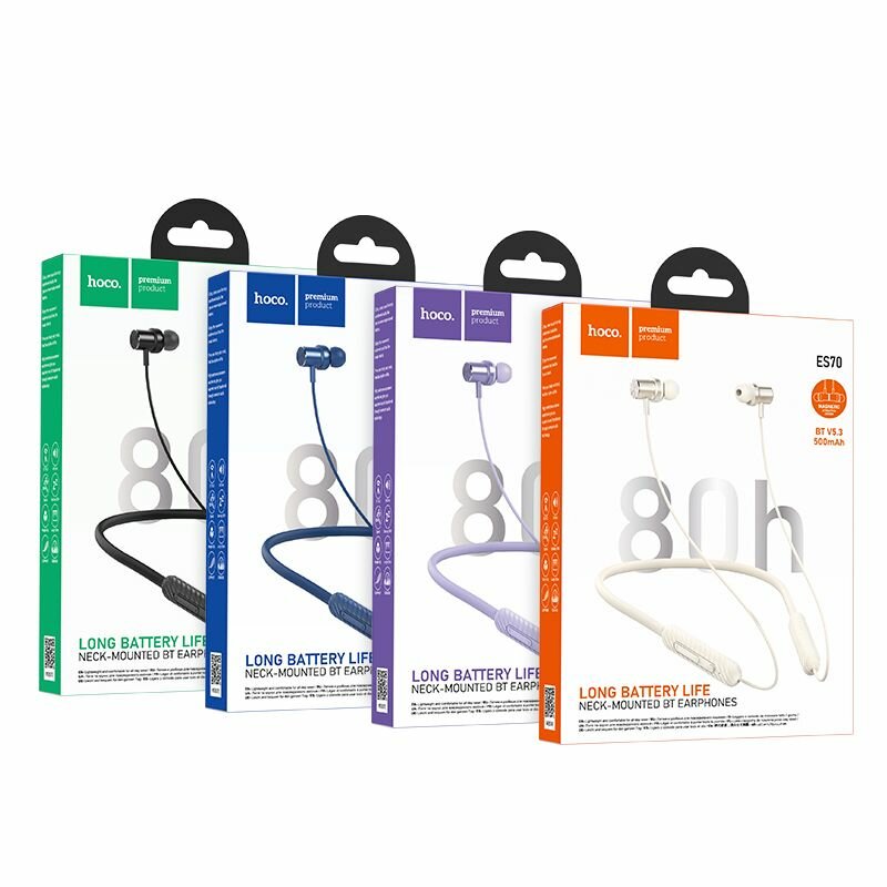 Наушники ES70, HOCO, беспроводные спортивные наушники с шейным ободком, фиолетовый
