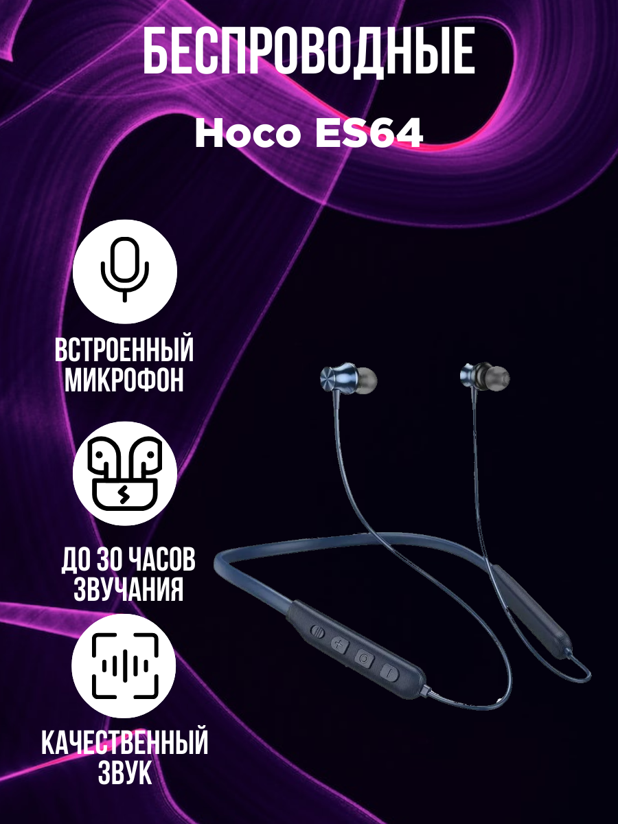 Наушники ES70, HOCO, беспроводные спортивные наушники с шейным ободком, черный