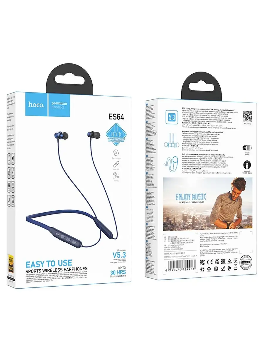 Беспроводные наушники ES70, HOCO, спортивные наушники с шейным ободком, синий