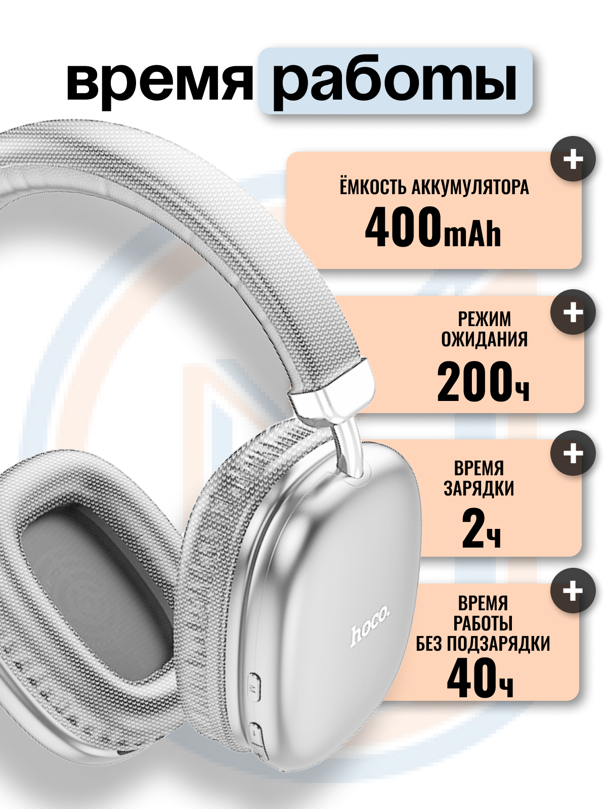 Беспроводные полноразмерные наушники Hoco W35 Air, 45h , серебро