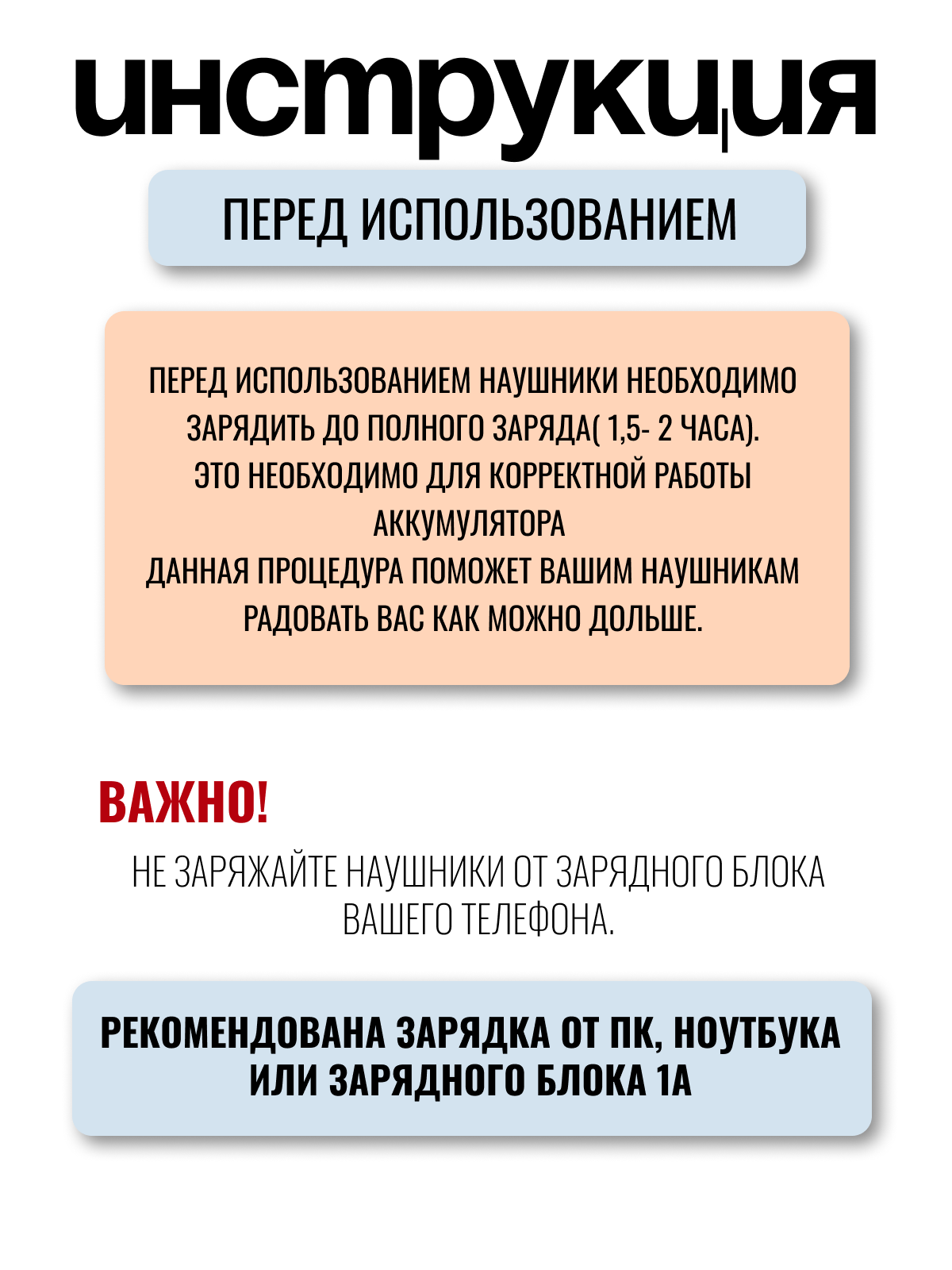 | Комплектация | Наушники; зарядный провод USB - TYPE C; кабель aux |