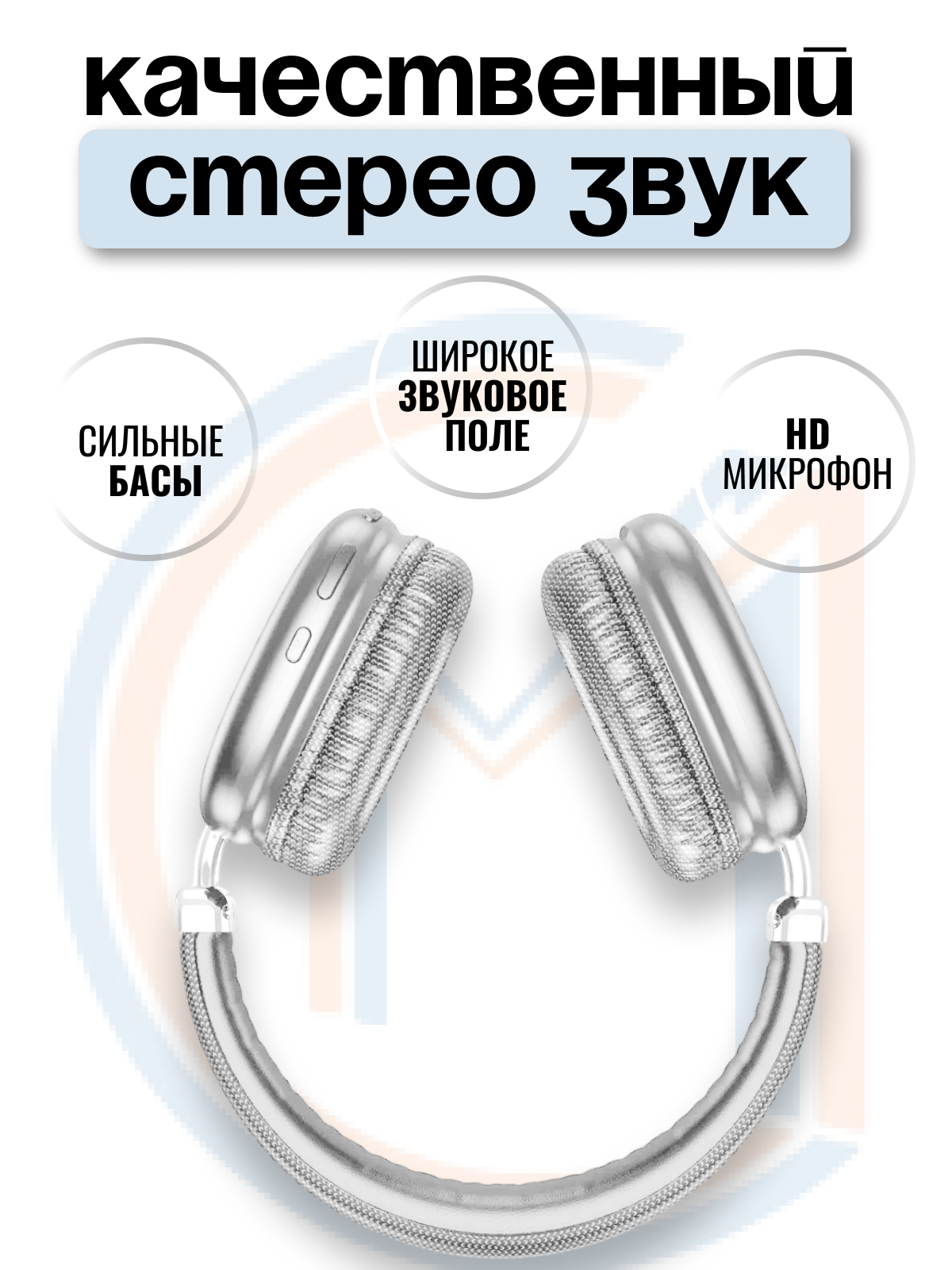 Наушники беспроводные накладные с микрофоном большие