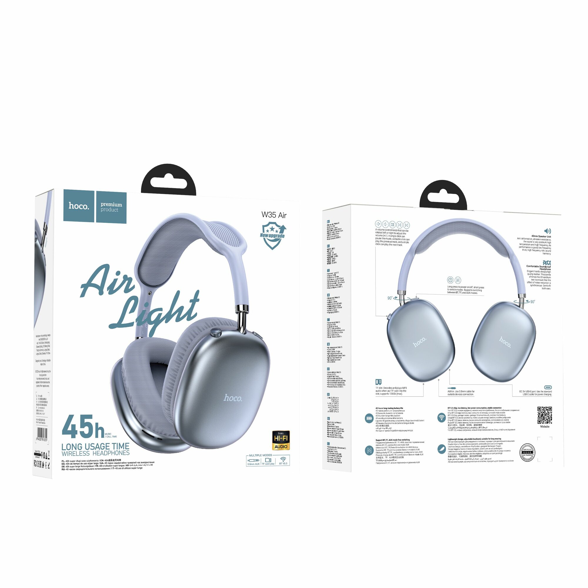 Беспроводные наушники Hoco W35 Air / BT 5.3 + поддержка 3.5mm AUX и TF card / 45 часов музыки