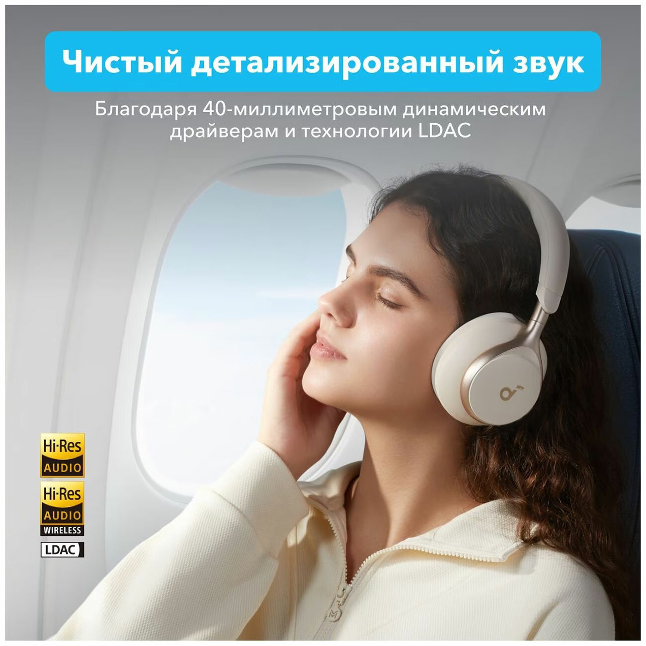Беспроводные наушники Anker Soundcore Space One, бежевый/белый