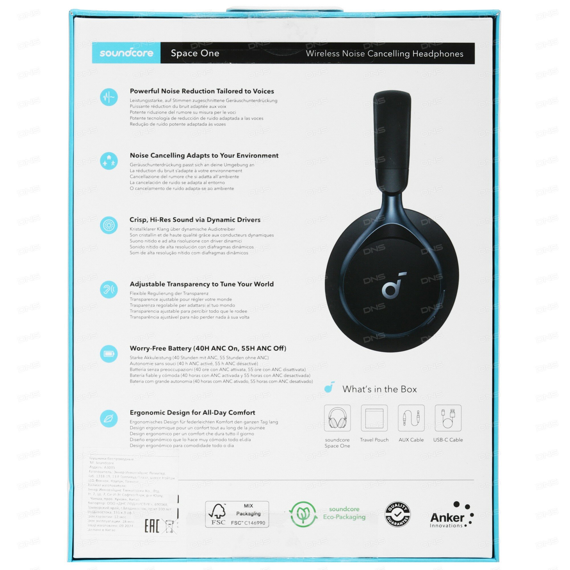 Наушники беспроводные полноразмерные Soundcore Space One (Q40) / Наушники беспроводные с шумоподавлением (A3035), черный