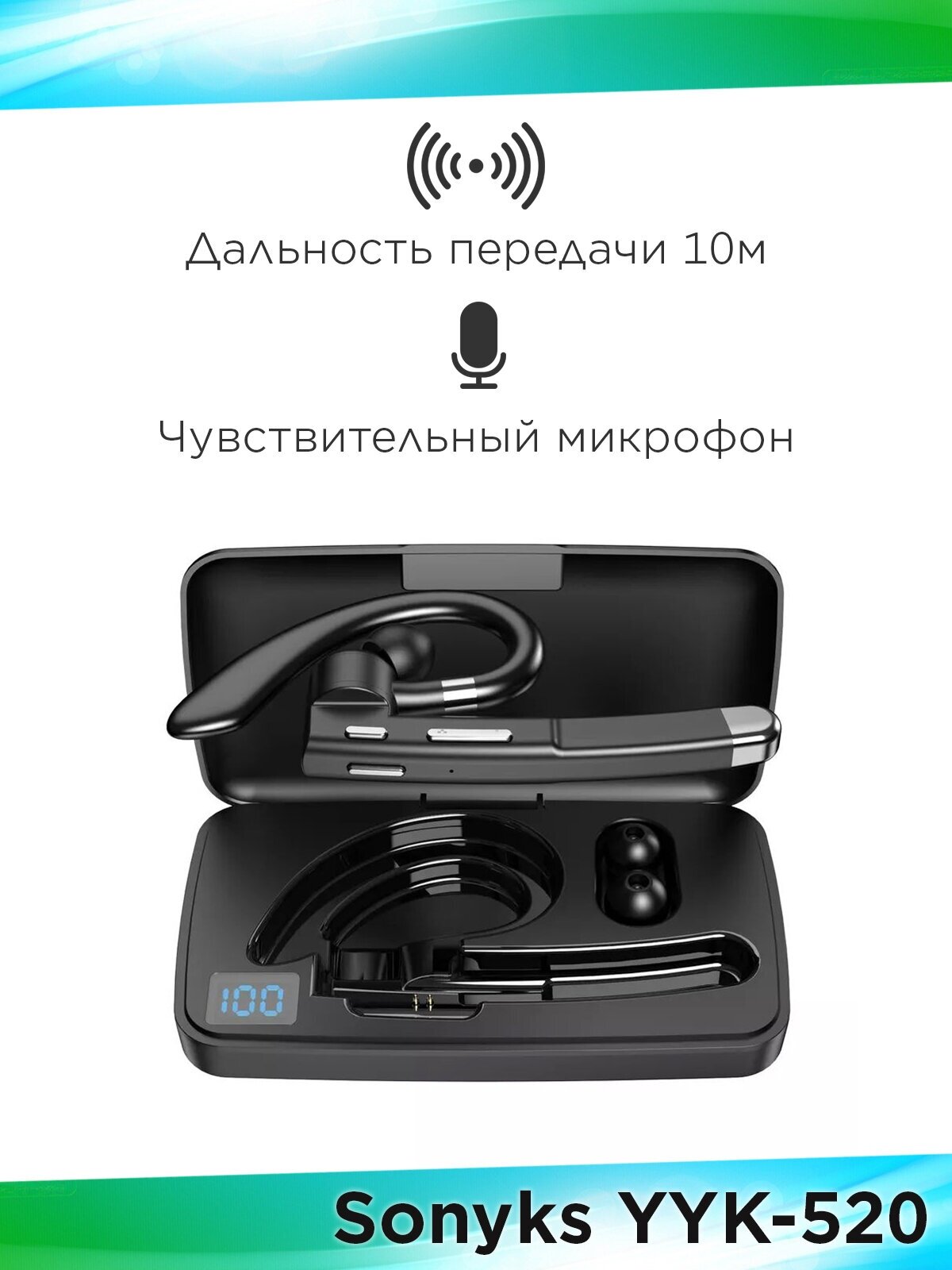 Bluetooth-гарнитура YYK-520, черного цвета с зарядным кейсом, Bluetooth V5.3 интересное: