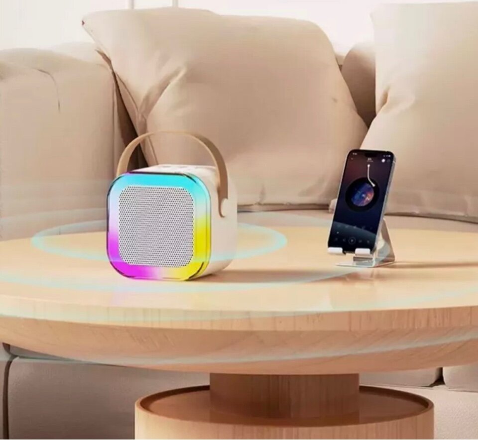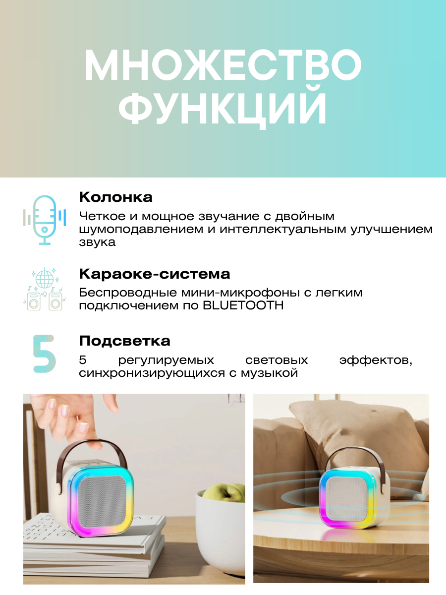 Портативная колонка караоке 2 микрофона с подсветкой беспроводная интересное:
