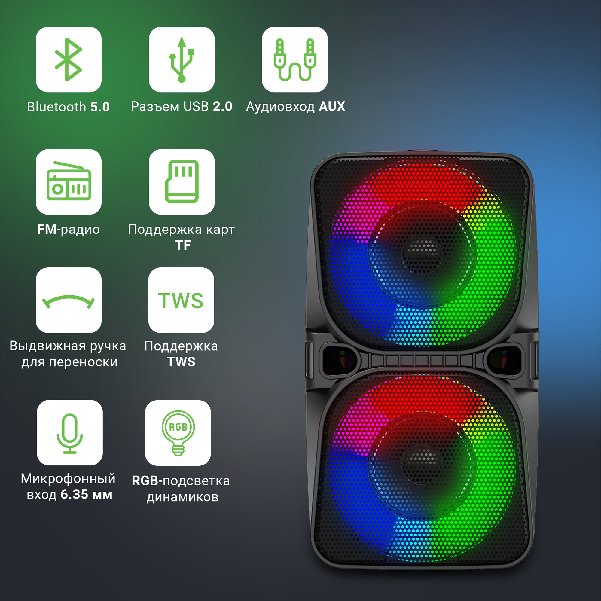 | Особенности | FM-радио / встроенный микрофон (функция HandsFree) / поддержка microSD / световые эффекты |