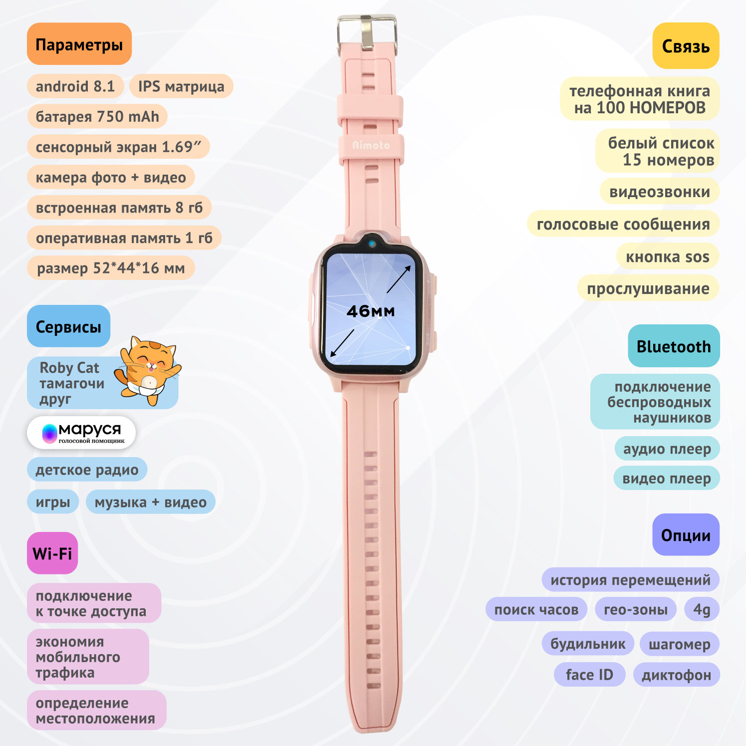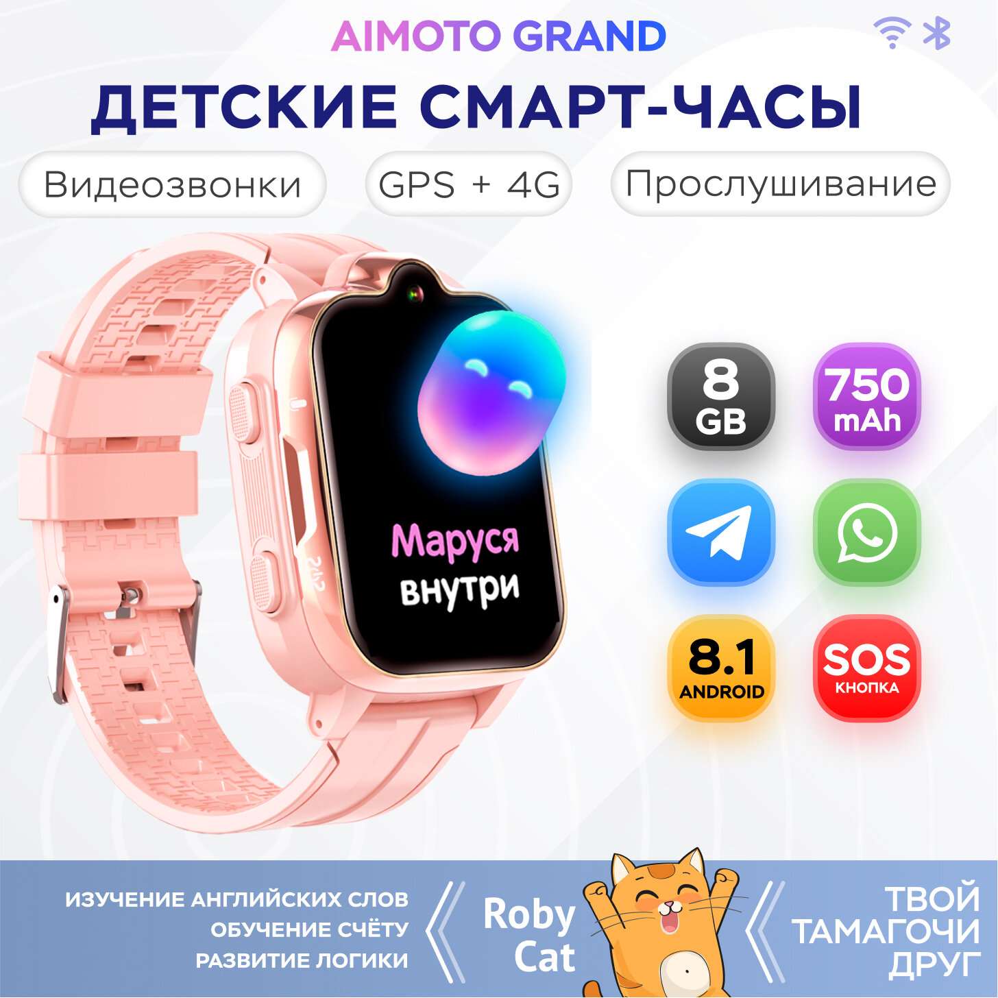 Купить Cмарт часы детские с Ватсапом, Марусей, Телеграм, Aimoto Grand, умные часы для детей с GPS 4G, для ребенка с прослушкой, смарт часы детские для мальчика и девочки, Розовый