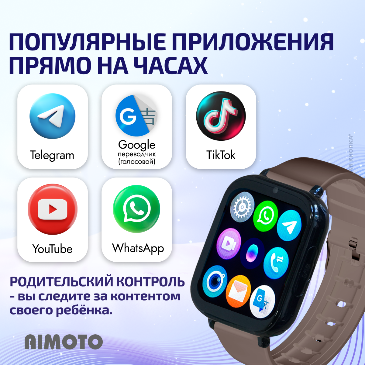 СохранитьУмные часы детские Aimoto Freestyle коричневый, детские часы с Марусей от VK, ватсап, телеграм, TikTok, Ютуб, Google переводчик интересное: