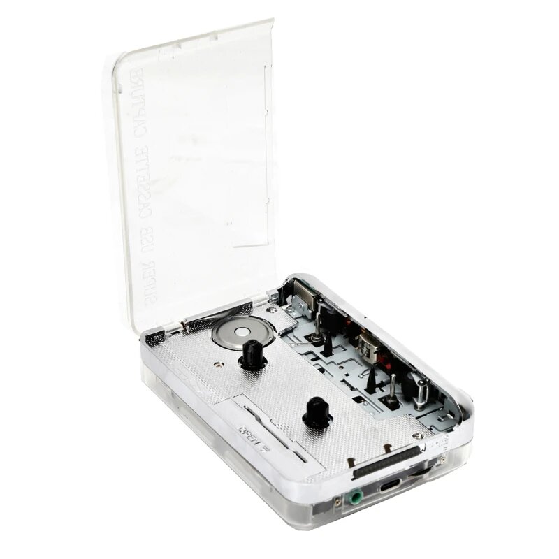 Кассетный проигрыватель портативный магнитофон для Mp3 полный прозрачный корпус USB /Type-C порт кассета в формат MP3 ленточный проигрыватель