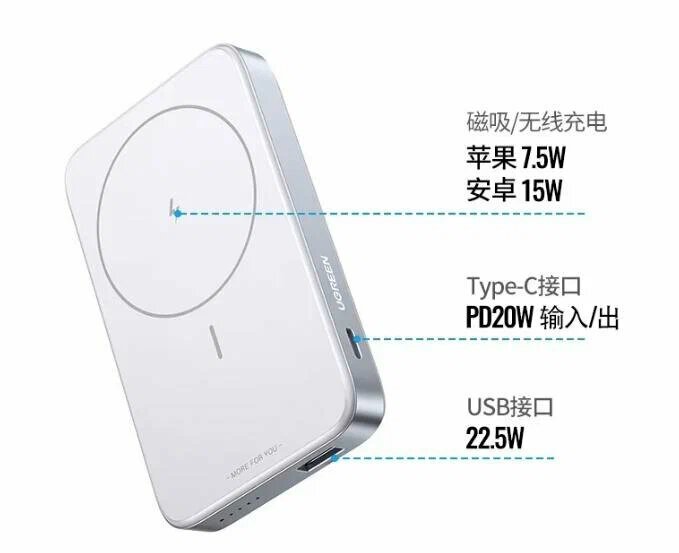Внешний аккумулятор Ugreen PB206 25154,10000мАЧ, быстрая беспроводная зарядка, белый интересное: