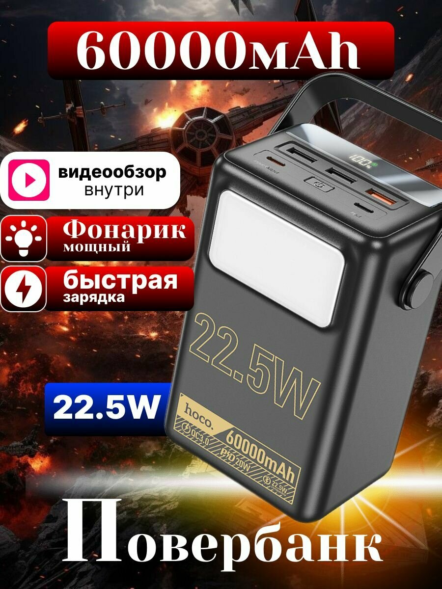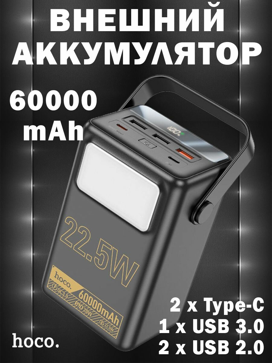 Внешний аккумулятор Hoco J110 Powerful 22.5W Power bank (60000 mAh) с фонарем, черный интересное: