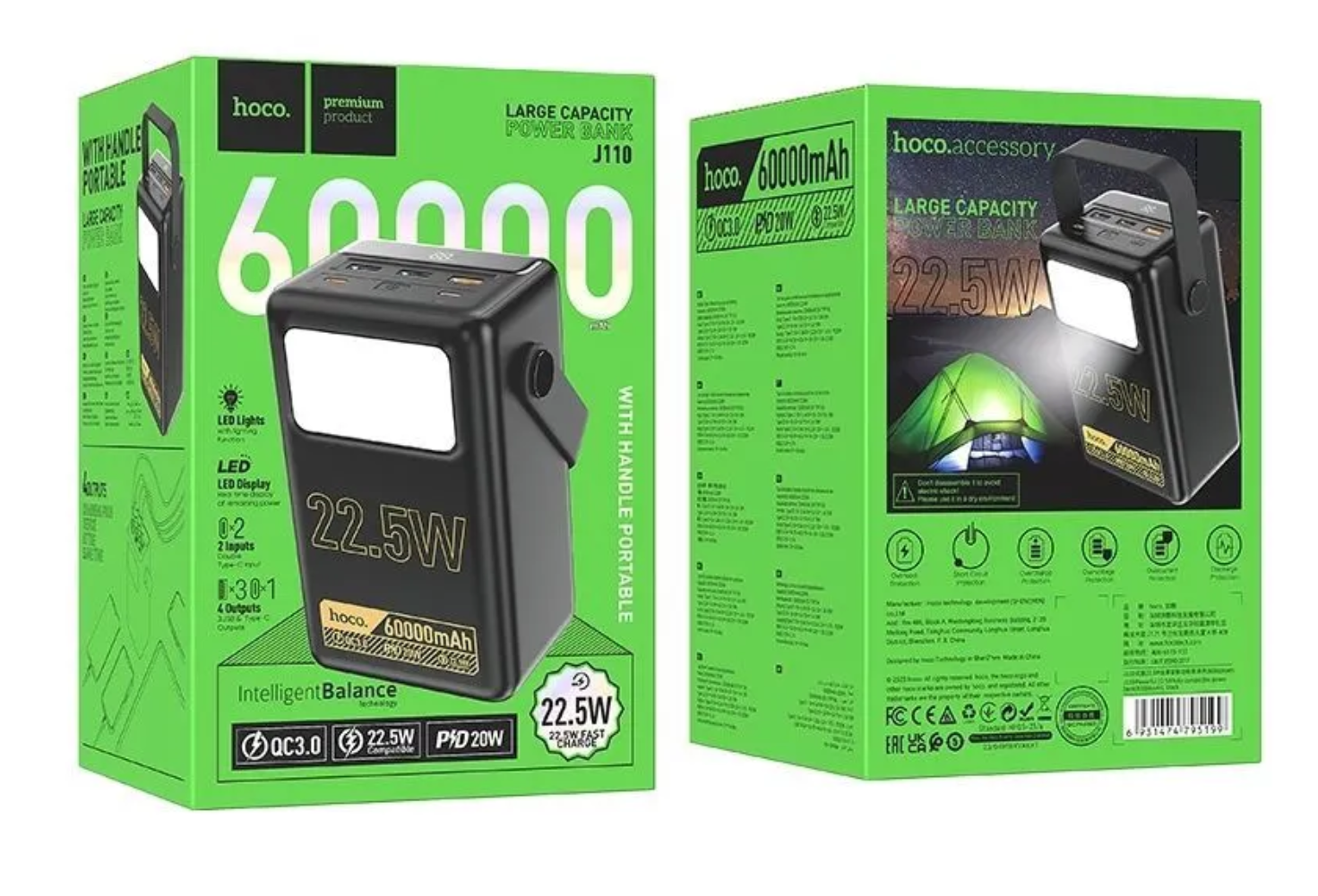 Повербанк (POWERBANK) HOCO J110 60000 mAh 22.5W, быстрая зарядка, черный