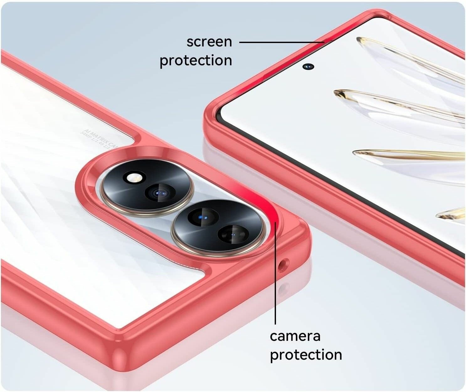 Чехол для Honor 70 пластиковый с силиконовой окантовкой красный