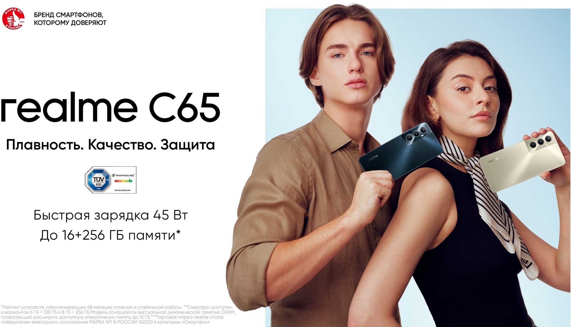 Смартфон realme C65 6/128 ГБ, 2 nano SIM, черный