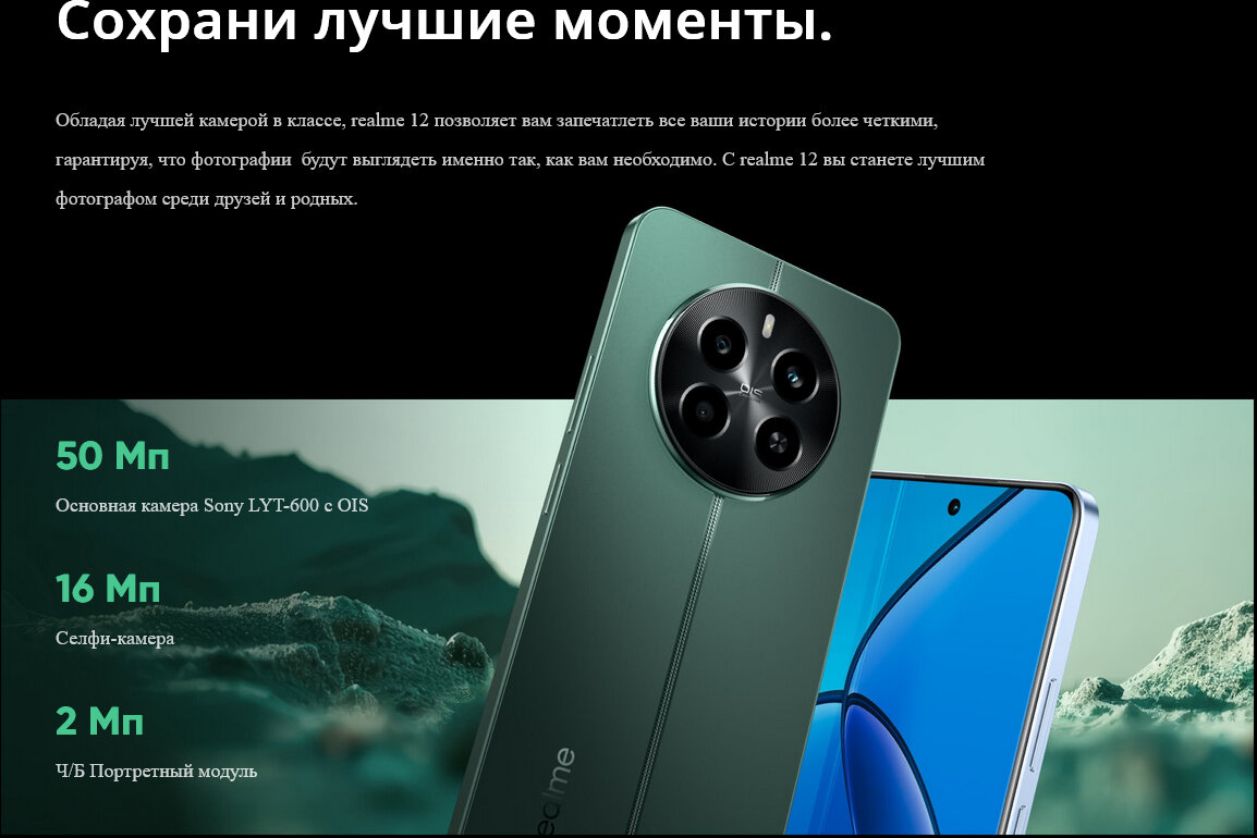 Смартфон realme 12 8/256 ГБ RMX3871, Зеленый малахит