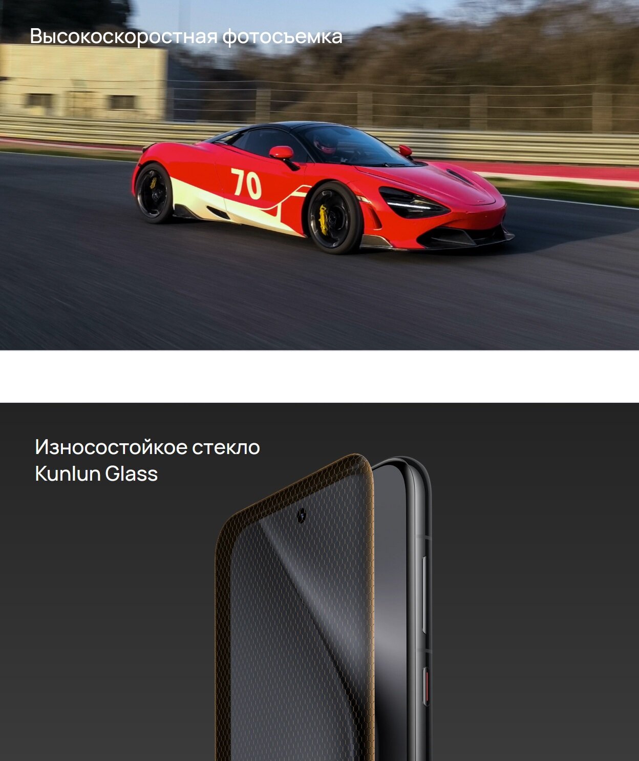 | Особенности | стекло Kunlun Glass 2 |