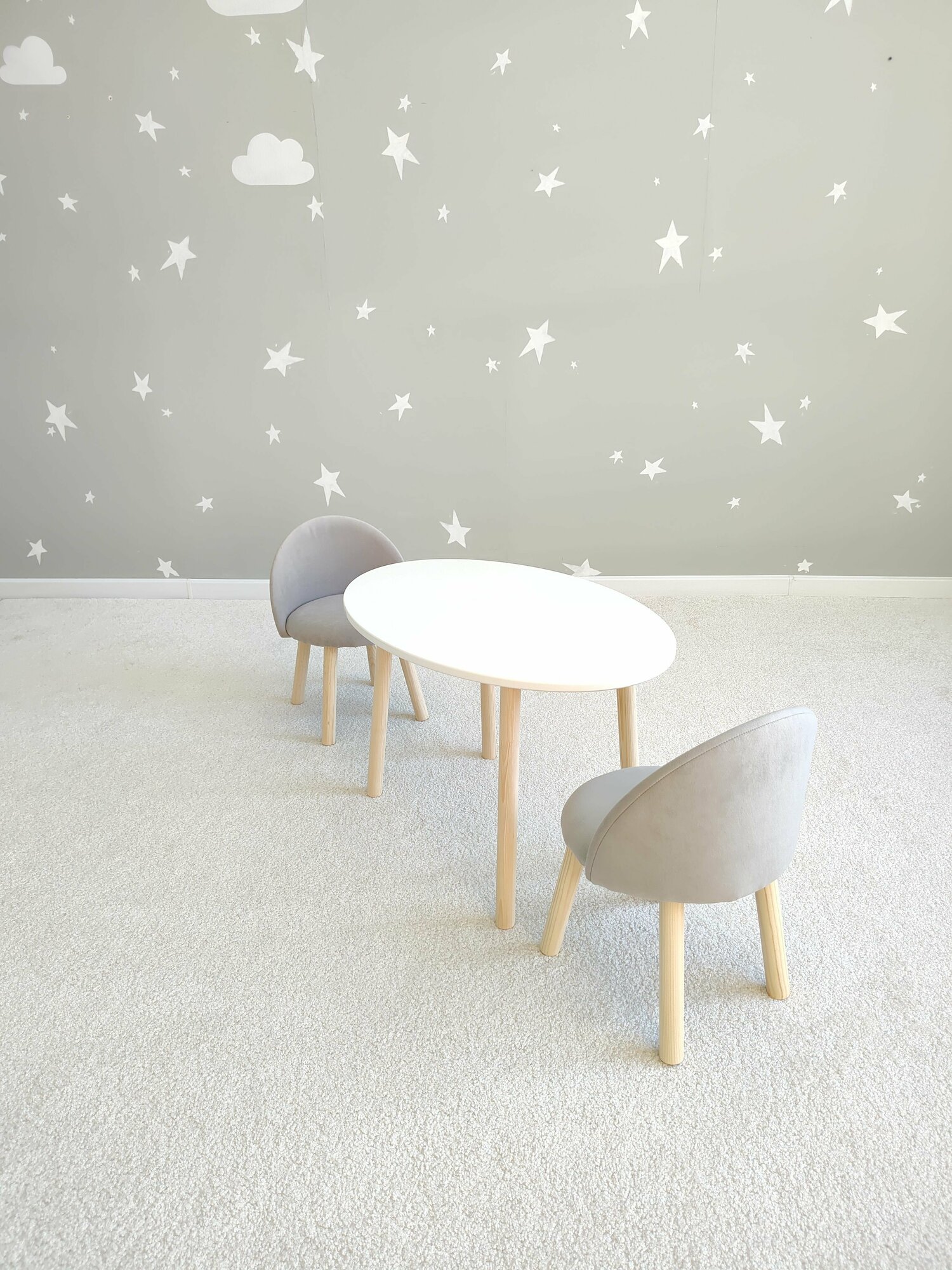 Детский стол и стул "Облако" белый + Мягкий стульчик Серый